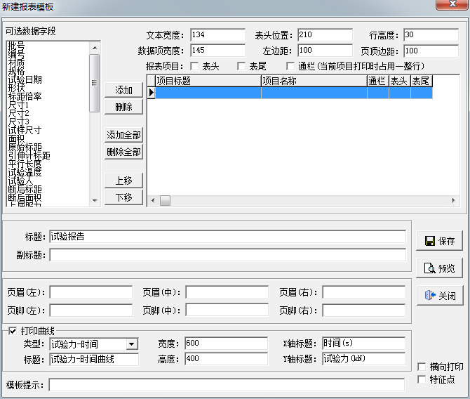 (9)可按用戶要求格式打印試驗報告。用戶可以自己選擇報告輸出基本信息和試驗結(jié)果及試驗曲線的內(nèi)容,滿足各種需要;